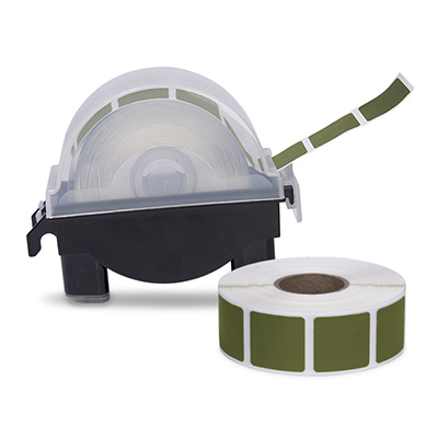 Roll of 1000 7/8" Square Target Pasters with Plastic Dispenser (Dark Green)
