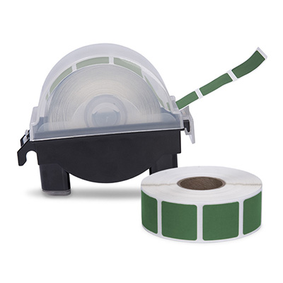 Roll of 1000 7/8" Square Target Pasters with Plastic Dispenser (Green)