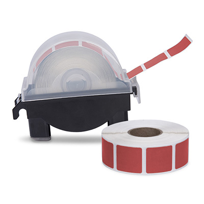 Roll of 1000 7/8" Square Target Pasters with Plastic Dispenser (Red)