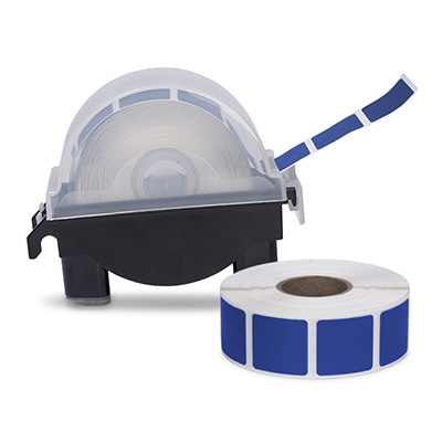 Roll of 1000 7/8" Square Target Pasters with Plastic Dispenser (Dark Blue)